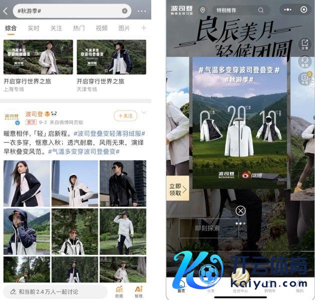 「热门传递」灵验调治了粉丝的本色共创力,匡助品牌完了个性化传播交互的同期,将官宣博文打形成了一个热门源,并将影响力放射到了#于适叠穿ootd#等多个话题,使其上榜热搜,带动波司登和新品声量层层传递。