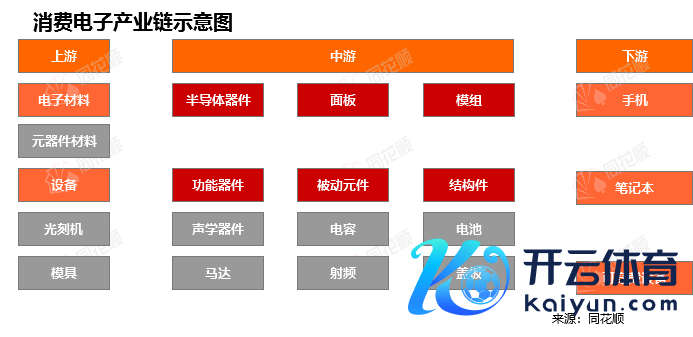 花费电子行业产业链上游主要为芯片、半导体、传感器、裸露屏、有色金属等原材料。中游为花费电子行业,主要居品有手机、平板电脑、条记本电脑、可穿着引诱等;下流通过线上及线下销售渠谈最终到达结尾花费者手中。