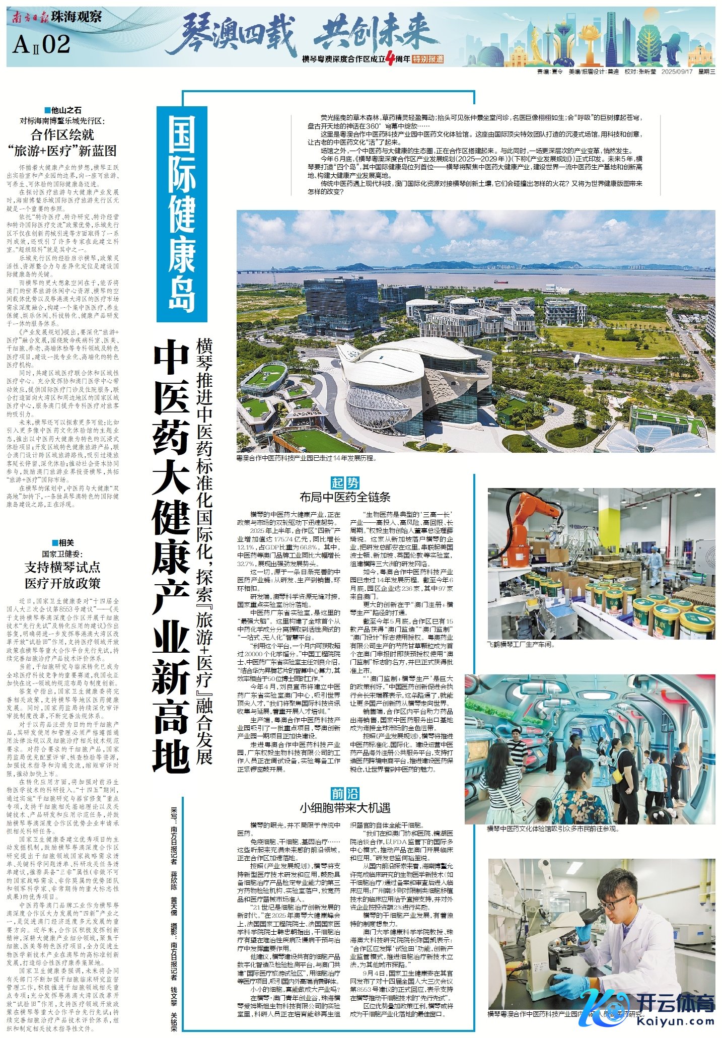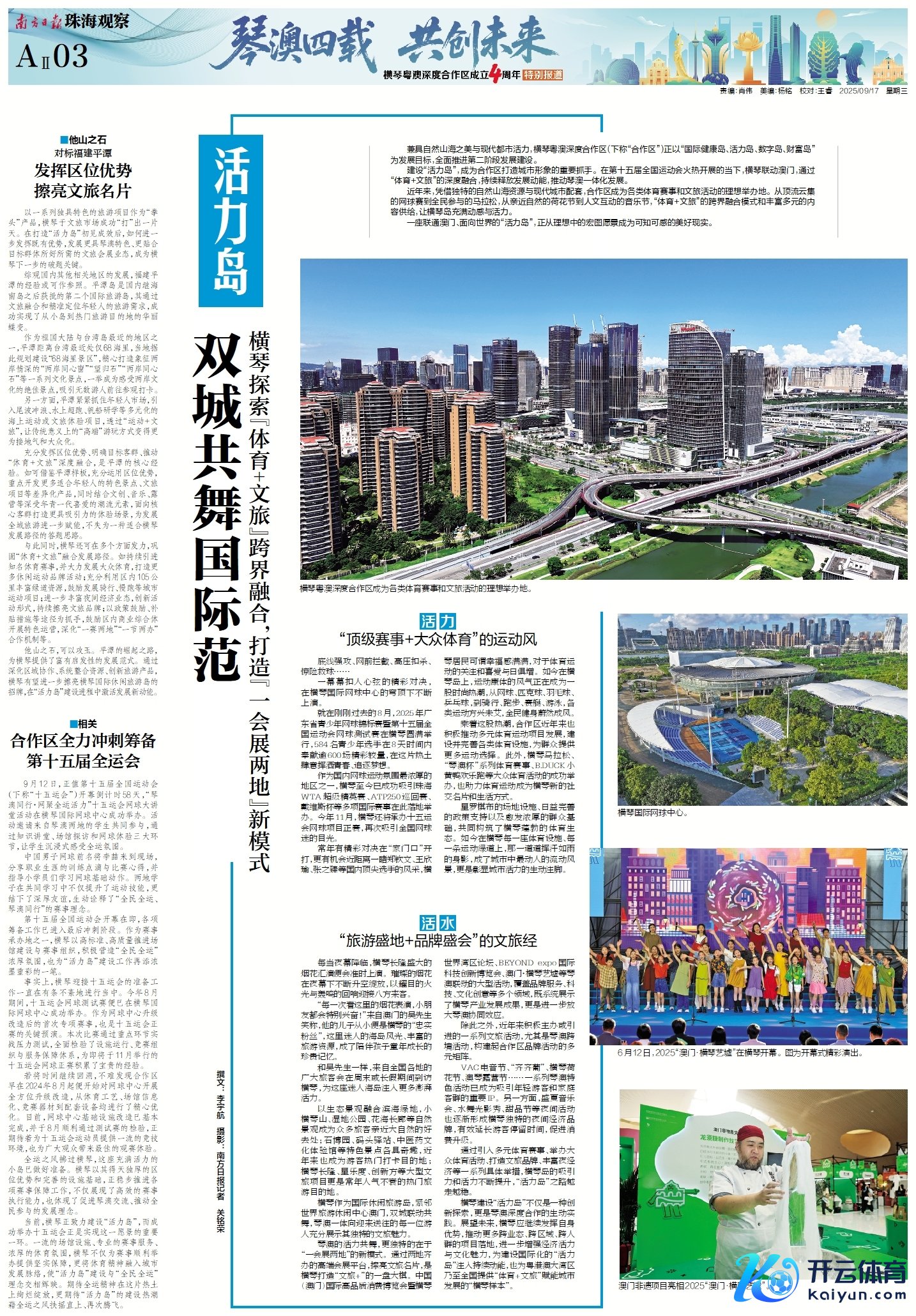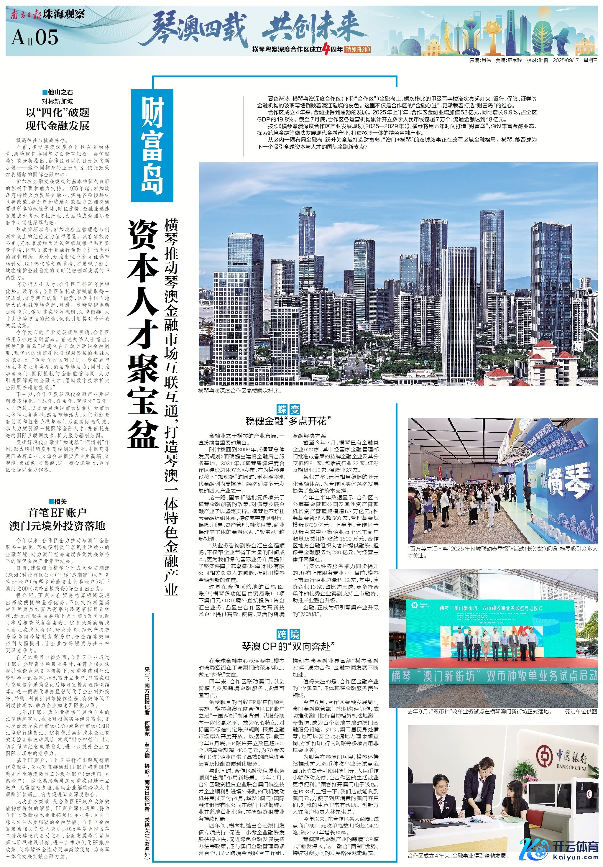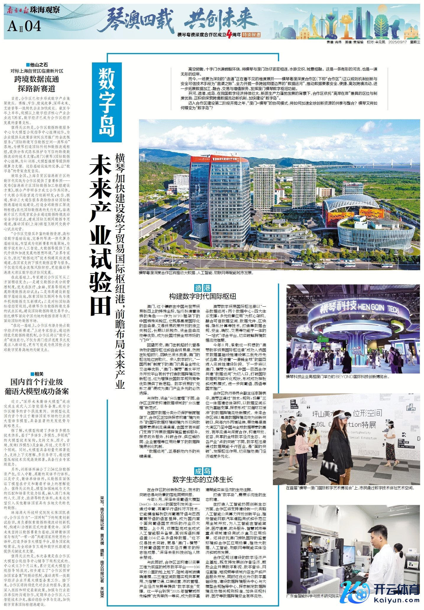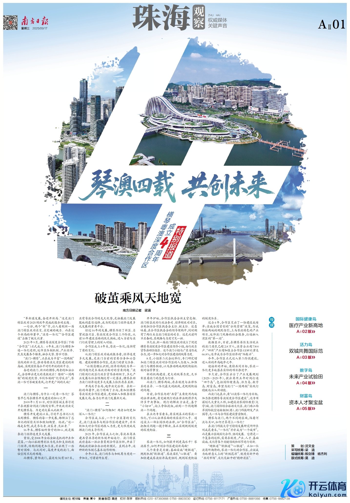 在息争区建立四周年之际,南边日报、南边+客户端推出《琴澳四载 共创翌日——横琴粤澳深度息争区建立四周年终点报谈》,证据会通探路新故事,纪录琴澳一体新篇章。
