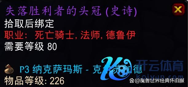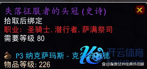 P3阶段很可能会新怒放一批213等第新泰坦余烬牌子装开云体育,巫妖王之怒怀旧服213等第勇气纹章牌子装和冬拥湖213等第腰带、胸甲和饰品P3阶段再不怒放兑换以后也没必要开了。