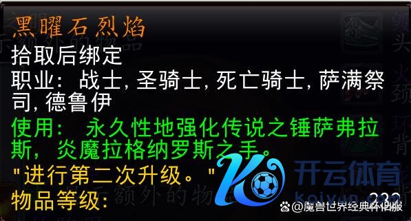 时光服数据库中也曾不错找到P3阶段橙装升级物品,橙锤升级物品黑曜石炎火或者率为黑曜石圣殿掉落,橙项链升级物品魔法的碎屑或者率为不朽之眼掉落,再用甩掉法可得风剑升级说念具雷霆的回响或者率为纳克萨玛斯(通过名字揣摸最可能是电男)掉落。掉落相貌应该和P2阶段不异,玩家作念出橙装后每个阶段还得用钱买升级物品。