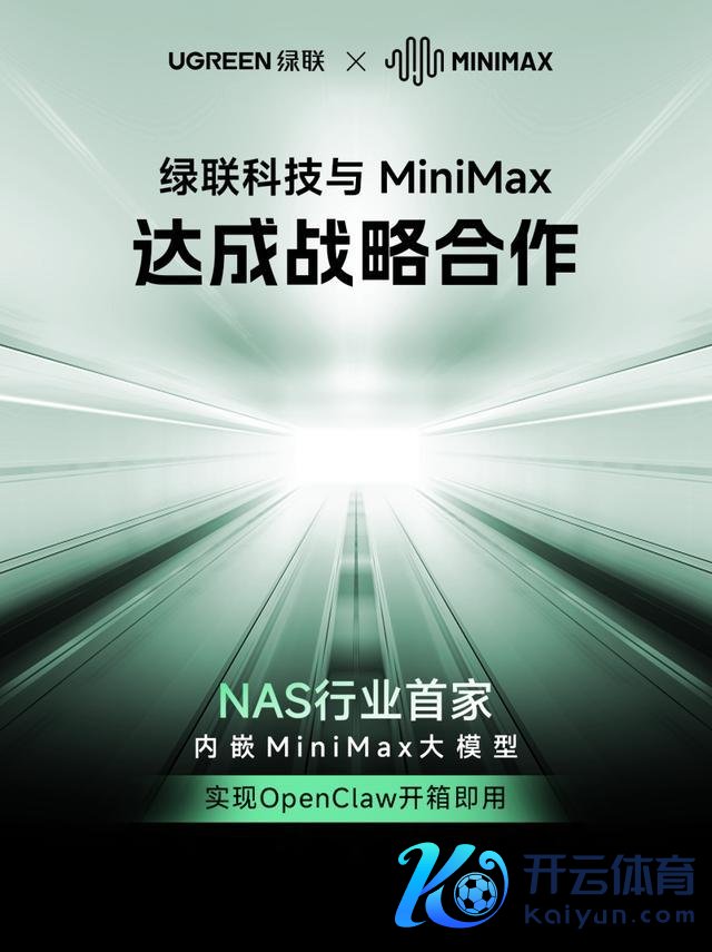 IT之家 3 月 13 日音讯云开体育,绿联科技本日书记与国内通用东谈主工智能企业 MiniMax 已毕深度政策配合,两边基于特有云场景与 AI 大模子本领的深度会通,连结推出专属定制化 AI 措置有狡计,绿联成为 NAS 行业首家原生内嵌 MiniMax 大模子的品牌。