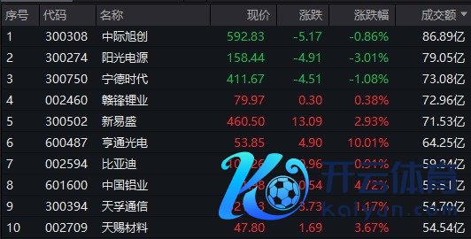 个股方面,中际旭创成交额超86亿元居首,阳光电源、宁德期间、赣锋锂业成交额靠前。